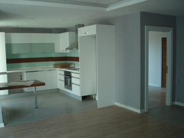 - Salon: Zemin laminate parke, dekoratif asma tavan,duvar kağıdı, tavandan spot aydınlatma tesisatı, tv, tlf ve priz hattı