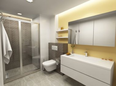 • Banyolarda daire tiplerine göre küvet, flat duş teknesi veya hemzemin duş sistemi kullanılacak ve duş kabini montajı yapılacaktır.