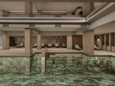 Kırcami bölgesinin ilk projesi olan Royal Garden 13.000 metrekare arazi üzerinde 6 blok ve 82 adet daireden oluşmaktadır. 3+1 ve 4+1 olarak 2 tip daire seçeneği olan projede her daireye 2 araçlık otopark, her daireye özel depo alanı ve çok geniş sosyal alanları barındırmaktadır. Açık alanda havuz ve tenis kortu, kapalı alanda ise geniş bir spa alanı ve kids club bulundurmaktadır. Projenin 2026 yılı sonunda teslim edilmesi planlanmaktadır.