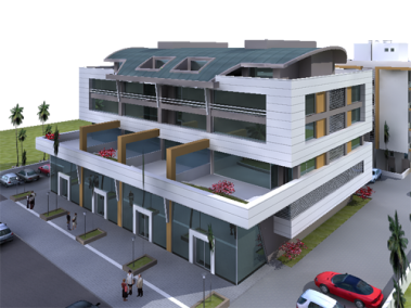 - Соответствующий проекту архитектурный облик, фасад покрыт водоотталкивающей эластичной краской, декоративное алюминиевое ограждение